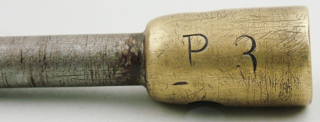 Die gleichen Ladestöcke wurde seit der Pistole m/1820 geführt. Lediglich wurde der Messingkopf für die Stutzenpistole m/1850 geändert. Die Flankörpistole war immer die zweite Pistole. Die zwei auf dem Stahlkopf könnte das anzeigen. Da der Messingkopf geändert wurde, ist dort keine "1" mehr aufgeschlagen?