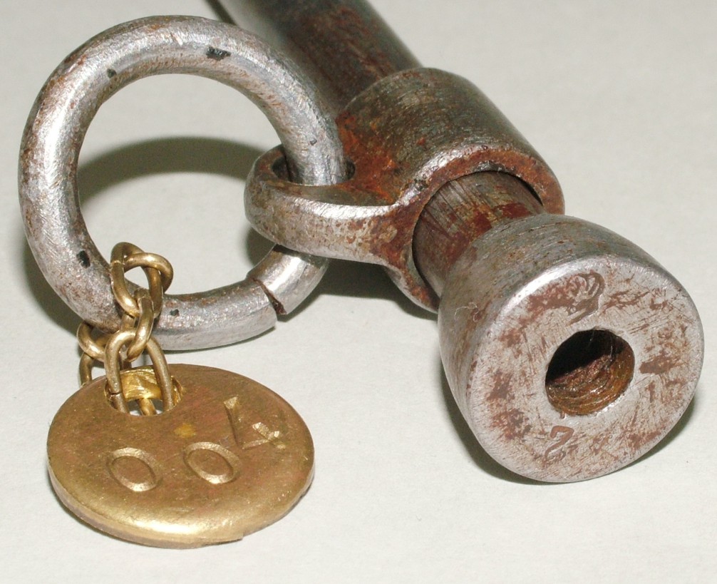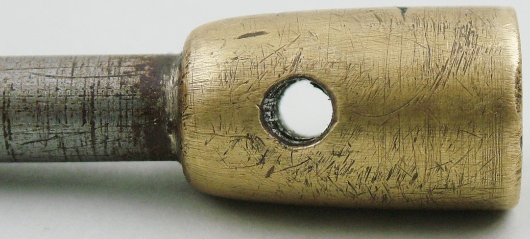 Der Messingkopf war für die Kugel der Stutzenpistole und der Stahlkopf für die Ladung der Flankörpistole gedacht.