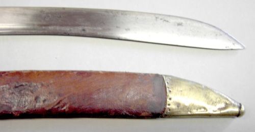Ich besitze einen Grenadiersäbel mit brauner Lederscheide, den ich bisher nicht einordnen konnte. Gesamtlänge 771mm, Klingenlänge 637mm, Klingenbreite 31mm; Scheide mit verdecktem Mundblech und Trageknopf. Keinerlei Marken oder Stempel.