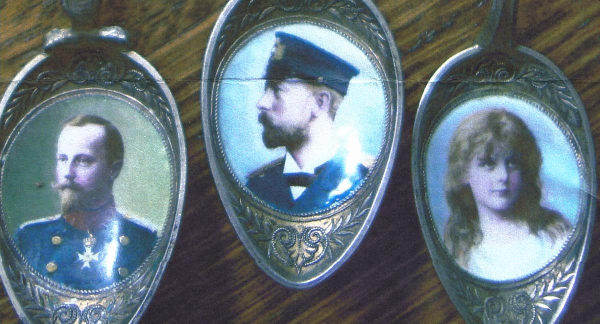 Ein (leider gefaltetes) Foto, das mich kürzlich mit der Frage erreichte, wer auf den Silberlöffeln abgebildet ist.