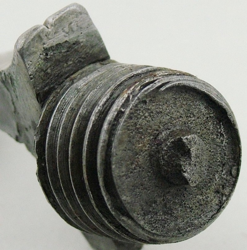 abgebrochen. Man kann aber deutlich den Ansatz des Dornes erkennen. Am Anfang meines Sammlerlebens wollte ich unbedingt wissen, wie so ein Dorn aussieht. Ich habe also den Lauf fast ein halbes Jahr in Öl mit guter