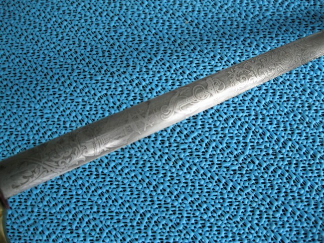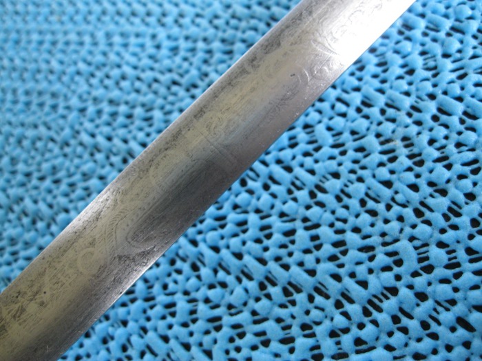 Ich besitze noch ein zweites, identisches Stück mit den gleichen Maßen. Auch hier weist die Klinge ein Ätzdekor mit unklarem Anker aber ohne Kaiserkrone auf.
