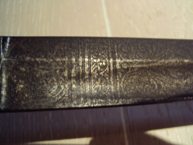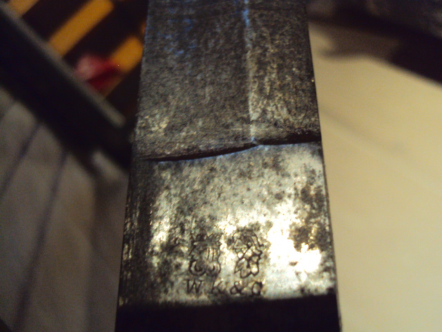 WK&C Solingen auf der Klinge. Des weiteren ist die Klinge bis zur Mitte verziert, sowohl auf beiden Klingenseiten als auch auf dem Rücken der Klinge.