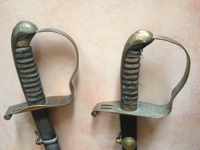 Ebenso verändert sich im Laufe der Zeit auch die Form des Stichblattes, so daß die beiden Säbeln mit der jeweils anderen Scheide zumindest zeitlich passen würden.