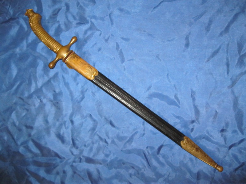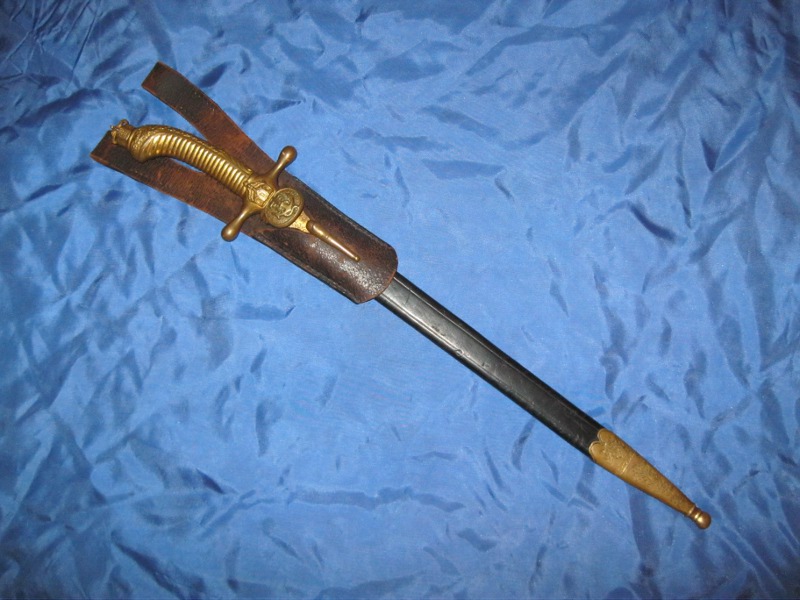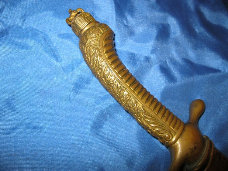 Das Seitengewehr weicht insofern vom normalen Standart-Applikantenseitengewehr (hatte ich hier schon mal vorgestellt) ab, da das Mund.- und Ortblech mit einem Eichenlaubdekor verziert worden ist.