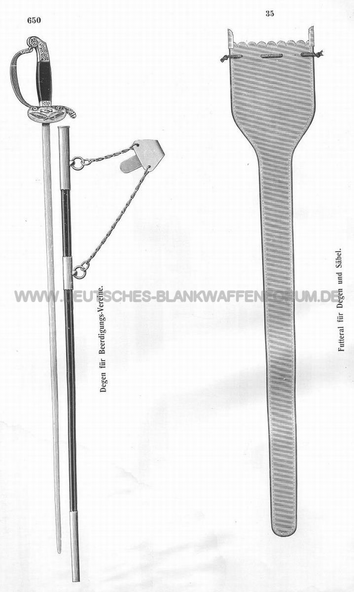 Den unten gezeigten Degen sind weiß montiert aus Neusilber oder versilbertem Messing.