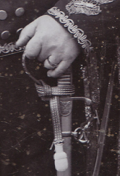 Interessant ist hierbei auch, daß zum Säbel ein kleines - eher zu einer kurzen Seitenwaffe gehörendes - Portepee geführt wird.