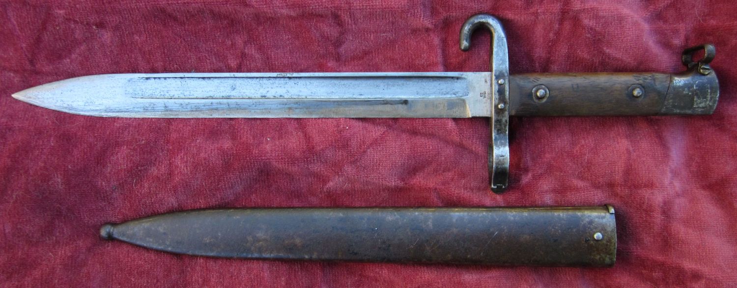 Im Unterschied zu den üblichen Seitengewehren M95 ist die Öse am Knauf und