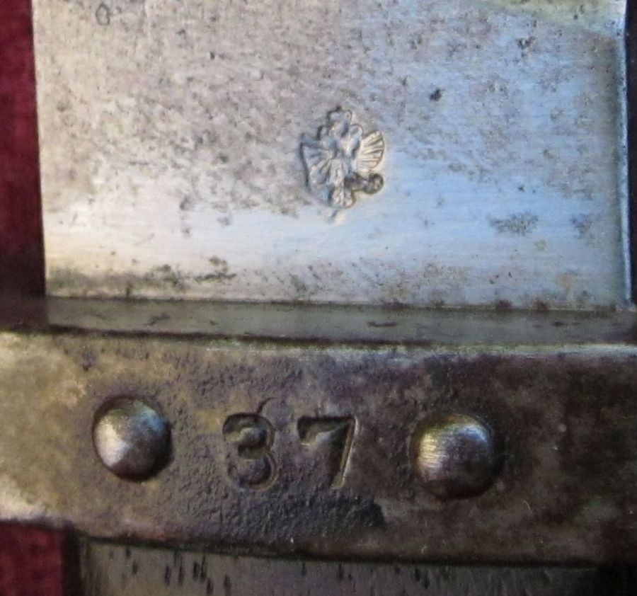 Weiterhin ist auf dem Parierstangenring ein Hilfs-Korn eingebracht.
