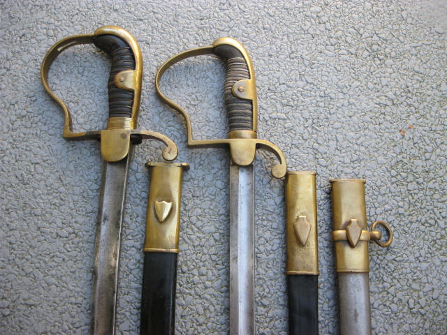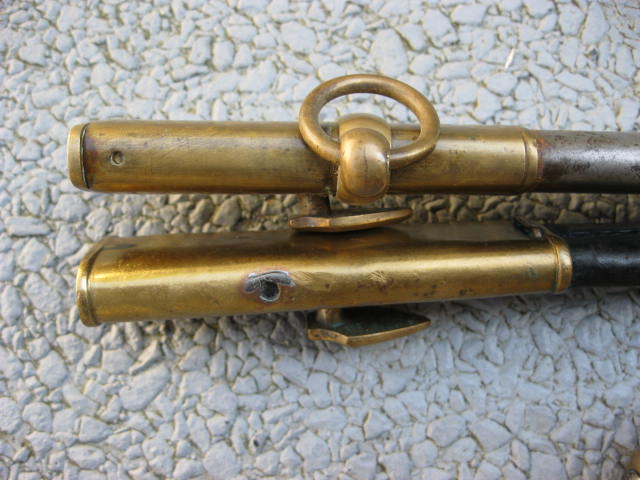 ich möchte hier zwei Füs.offz.säbel vorstellen.Der erste Säbel ist ein nichtreglementierter M 1826 von Ferd.Titel in Berlin.Der zweite Säbel ein M 1835 fühe Ausführung(ohne Jahreszahl auf dem Rücken,nur Abnahmestempel)Der eigentliche Grund warum ich die Stücke vorstelle ist die Metallscheide.Sie dürfte zu einem Füs.säbel gehören.Im Maier Bd.3 auf Seite 388 ist eine Lederscheide mit aufgeschobenen Ringband dieses Typs vorgestellt.Hat jemand ein ähnliches Stück?Bei dem 1835 ist eine Gewindebohrung zur Anbringung eines Trageringes zusehen.