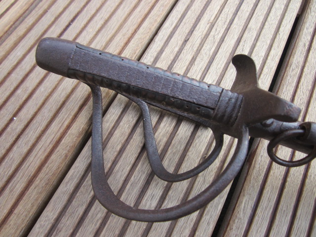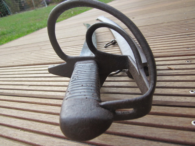 Den Säbel brachte letzte Woche ein Freund aus Frankreich mit. Die Veränderung der Parierstange ist alt und irgendwie hat man auch nicht das Gefühl, als wäre diese abgebrochen gewesen!?!