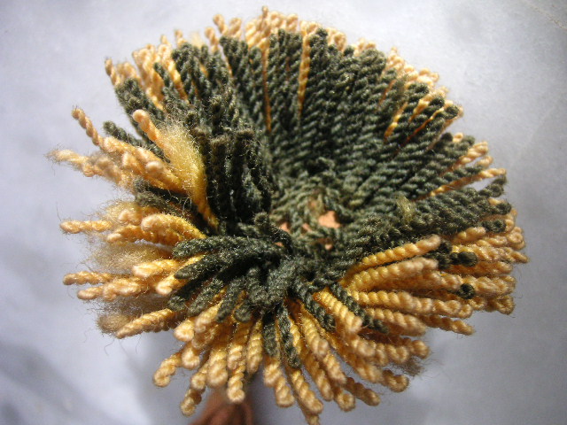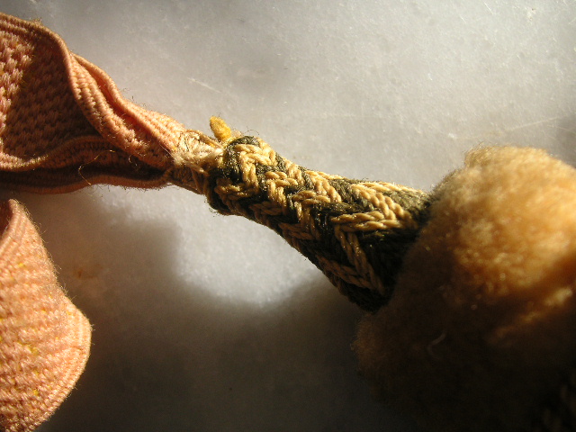 Eine exakte Bestimmung dürfte schwierig werden. Es ist aus den Bildern nicht klar ersichtlich, ob Farben verblasst sind, oder ob die Troddel aus verschiedenen Teilen zusammen gefügt wurde.