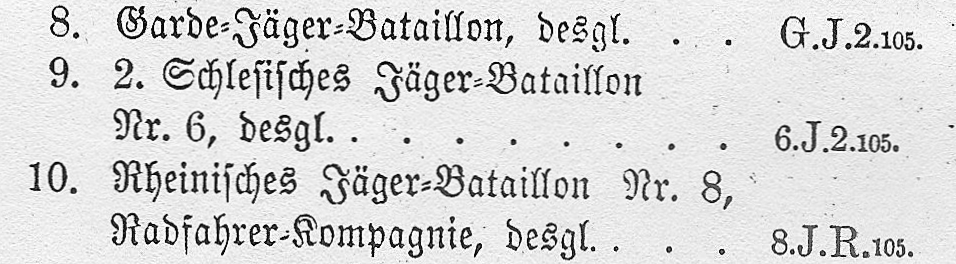 Laut Hermann Cron "Geschichte des deutschen Heeres im Weltkriege 1914-1918",Seite 299,E.Infanterie und Jäger