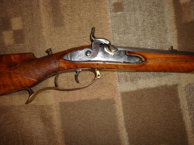 Das ist eine zivile Jagdbüchse, gefertigt in der ursprünglichen Steinschlossversion von Büchsenmacher