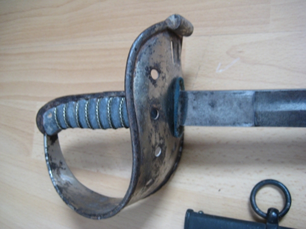 Die Stempelung befindet sich auf einem badischen Kavallerie-Extra-Säbel M 1856/59. Ich denke es sind DIN genormte Buchstaben die erst später an dem Säbel angebracht wurden und nicht militärischer Art sind (evntl. Inventar oder Sammlungsmarken).