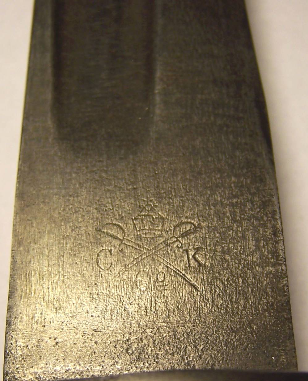 Klinge leider verputzt, nur noch Fragmente der Klingenätzung sichtbar.