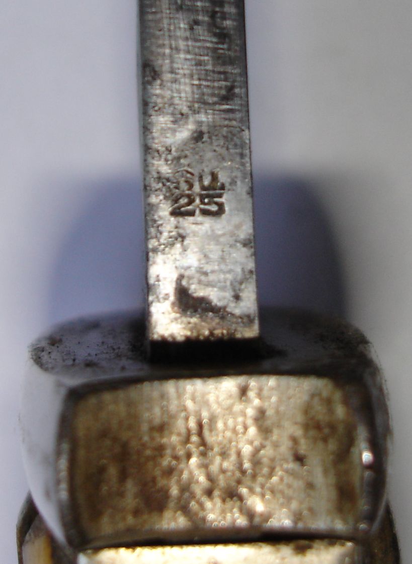 Bei Mike Welser "Reichswehr and Wehrmacht Bayonets 1920-1945" , Seite 5 wird er als Simson Ulbrecht Abnahmestempel gedeutet.Dieses Heft ist von 1985.