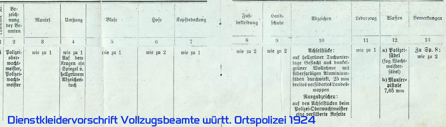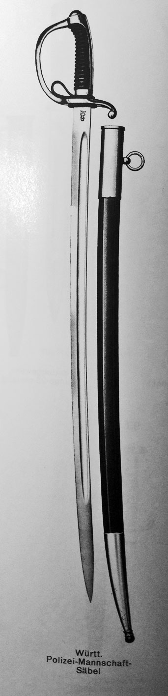 es handelt sich hierbei um den im Freistaat Württemberg (Freier Volksstaat Württemberg) Anfang der 20er Jahre eingeführten Polizeisäbel. Geführt wird die Blankwaffe von den Wachtmeisterdienstgraden im Einzeldienst, nicht aber von den Landjägern und Polizeischülern.