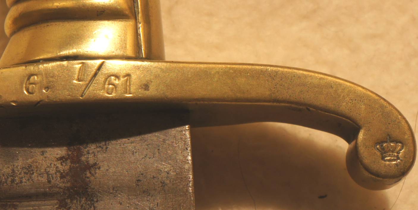 Auf Parierstange Truppenstempel 6. 1/61, auf Parierstangen-Endknoppf