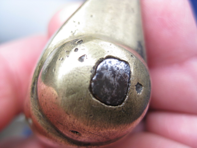 Blick auf die Vernietung: Sieht alt aus, hat sich aber in den Messingkopf eingezogen, daher rappelt die Klinge auch.