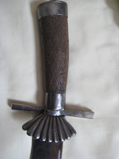 Dies ist eigentlich nicht mein Sammelgiebiet, deshalb habe ich mich auch noch nicht genauer damit beschäftigt. Ich denke mal, es handelt sich um militärische Diensthirschfänger. Bei allen drei Stücken sind keine Stempel oder Ätzungen mehr erkennbar. Der ganz Linke - in Eisen montiert- könnte evntl. ein württembergischer Hirschfänger für eine Bürgerwehr sein. Wenn jemand was zu den drei Stücken sagen kann, dann nur zu!
