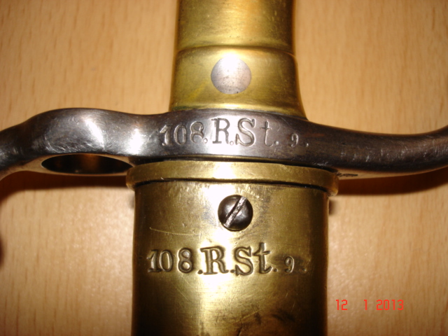 Bei Rolf Selzer "Königlich Sächsische Truppenstempel vor 1875" ist die Scheide eines Offizierdegen M/1879 mit Truppenstempel 108.R.St.2. abgebildet und dieser als Schützen-Regiment Nr.108,Stab, Waffe Nr.2 gedeutet.