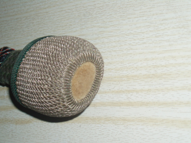 Das Portepee ist aus Leder,durchzogen von farbigen Fäden (Wolle).
