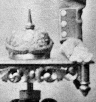 Fotografie aus München, Soldat mit Pickelhaube und Seitengewehr