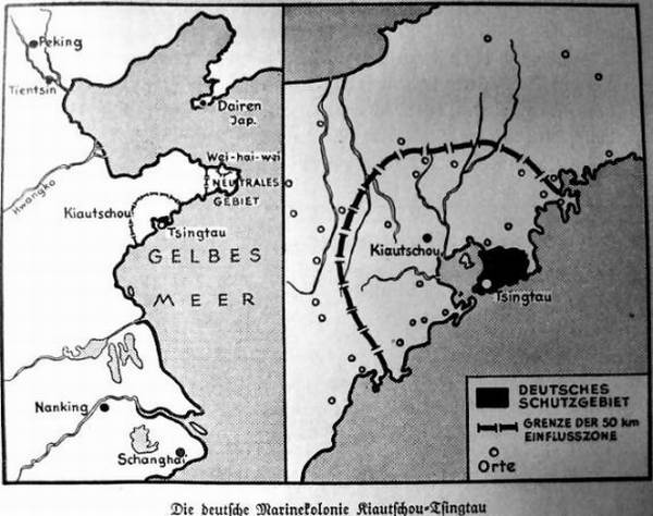 "Der erste Gouverneur Tsingtaus Vizeadmiral von Diederichs und oben der langjährige Gouverneur des Pachtgebietes Konteradmiral von Truppel, der in Tsingtau den großen Ausbau vollzog"