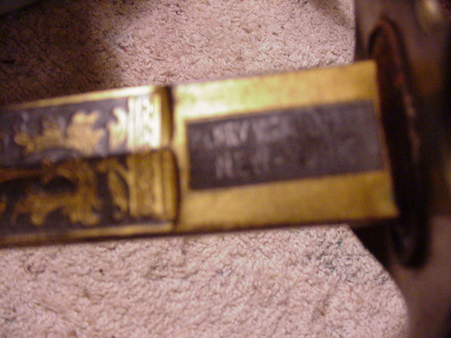 Gruessen Alle: Diese Saebel war, im Jahre 1910 Praesentiert zu Leutnant Everett Stanton, beim Mitgliedern seiner Regiment---Der 23er New York--National Guard. die Klinge is aus Deutschland, Hersteller ist E u.F Horster, Solingen. Tiefes aetzung mit Gold im Duetschen Art. Haendler ist Henry V. Allen & Co. NY..