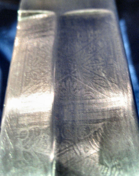 Interessant die vernickelte oder verchromte Scheide: Unteres Ringband entfernt, oberes Ringband feststehend!