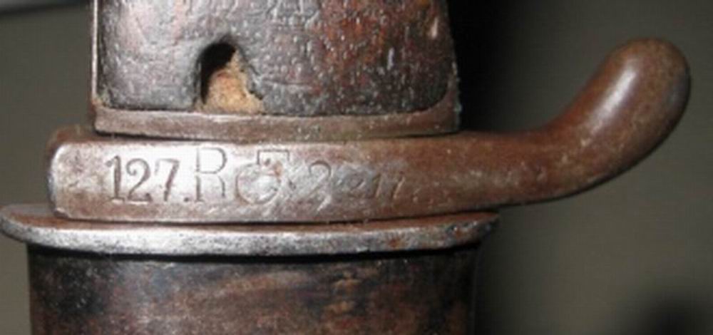 es ist eindeutig ein E , da man den Mittelstrich vom E sieht .Leider ist der Rest des Buchstaben E schlecht erkennbar.Somit stimme ich ulfberth zu, der Truppenstempel lautet 127.R.E.2.217.Weiterhin sollte man an die Ausrüstung der Formationen mit Seitengewehren denken. Die Telegraphen-Truppen führten dieses Seitengewehr nicht!