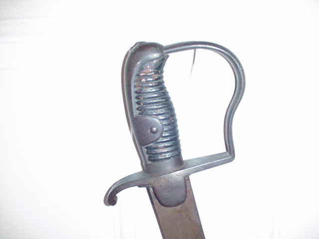 Griff aus Leder/Holtz und Cordel. Stahl oder Eisenblechs Scheide, keine Herstellersstempln. Nuer Truppen Stempln;
