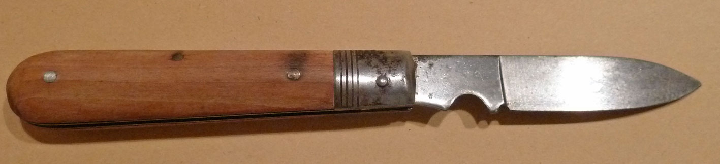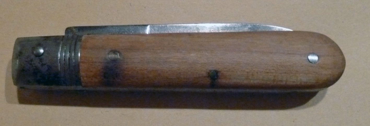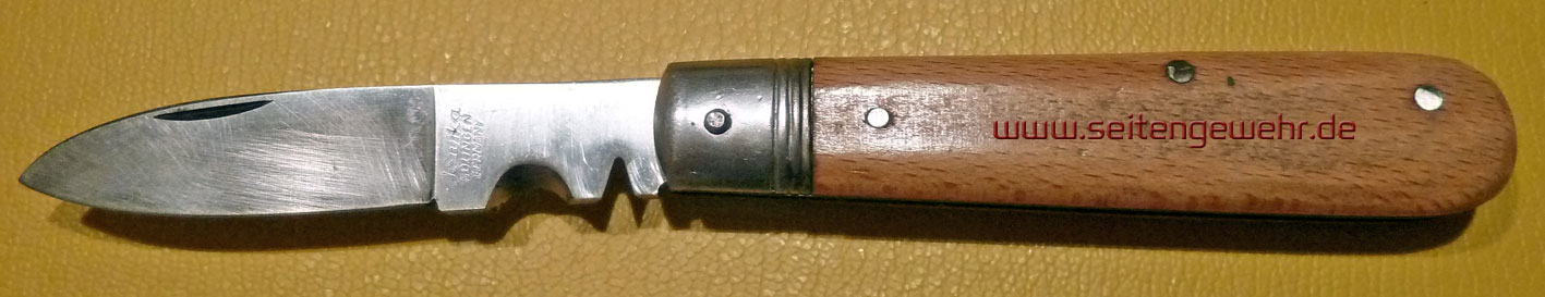 Die vermutlich letztes Ausführung des Kabelklappmessers mit Holzgriffschalen.