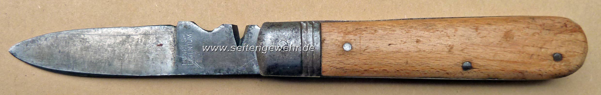 Die vermutlich letztes Ausführung des Kabelklappmessers mit Holzgriffschalen.