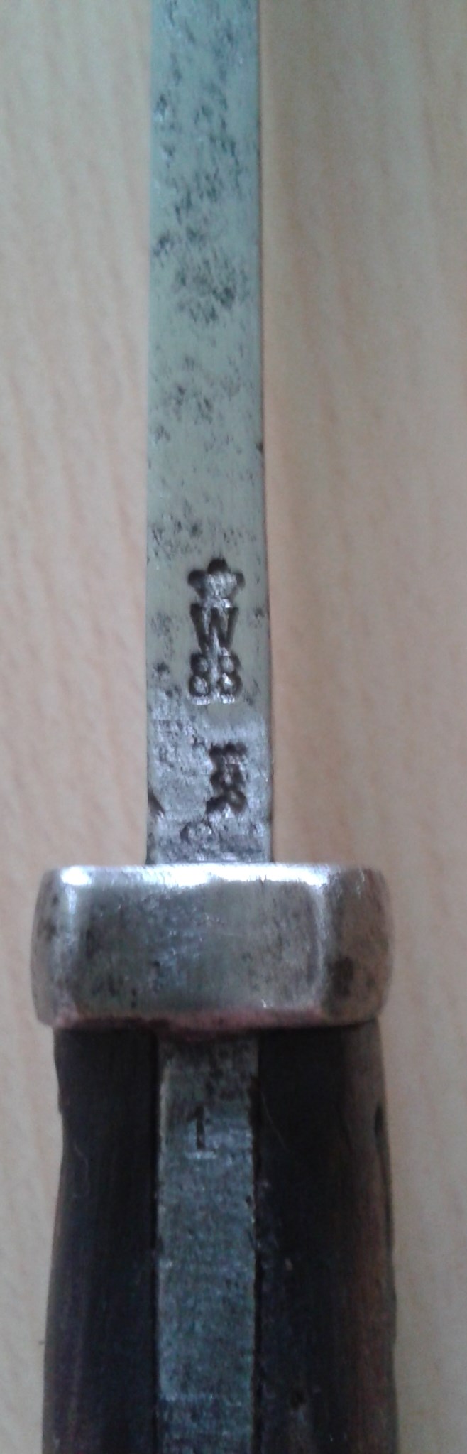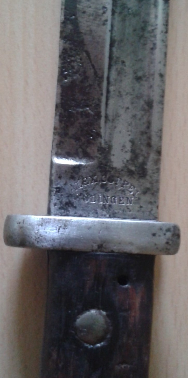 bezeichnen. Die Klinge stammt vom Seitengewehr 71/84 b.z.w. vom