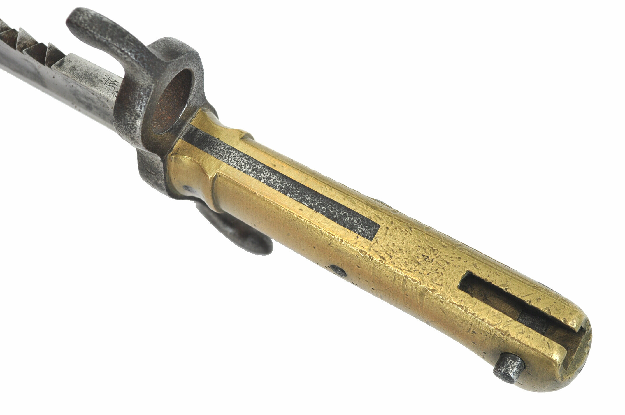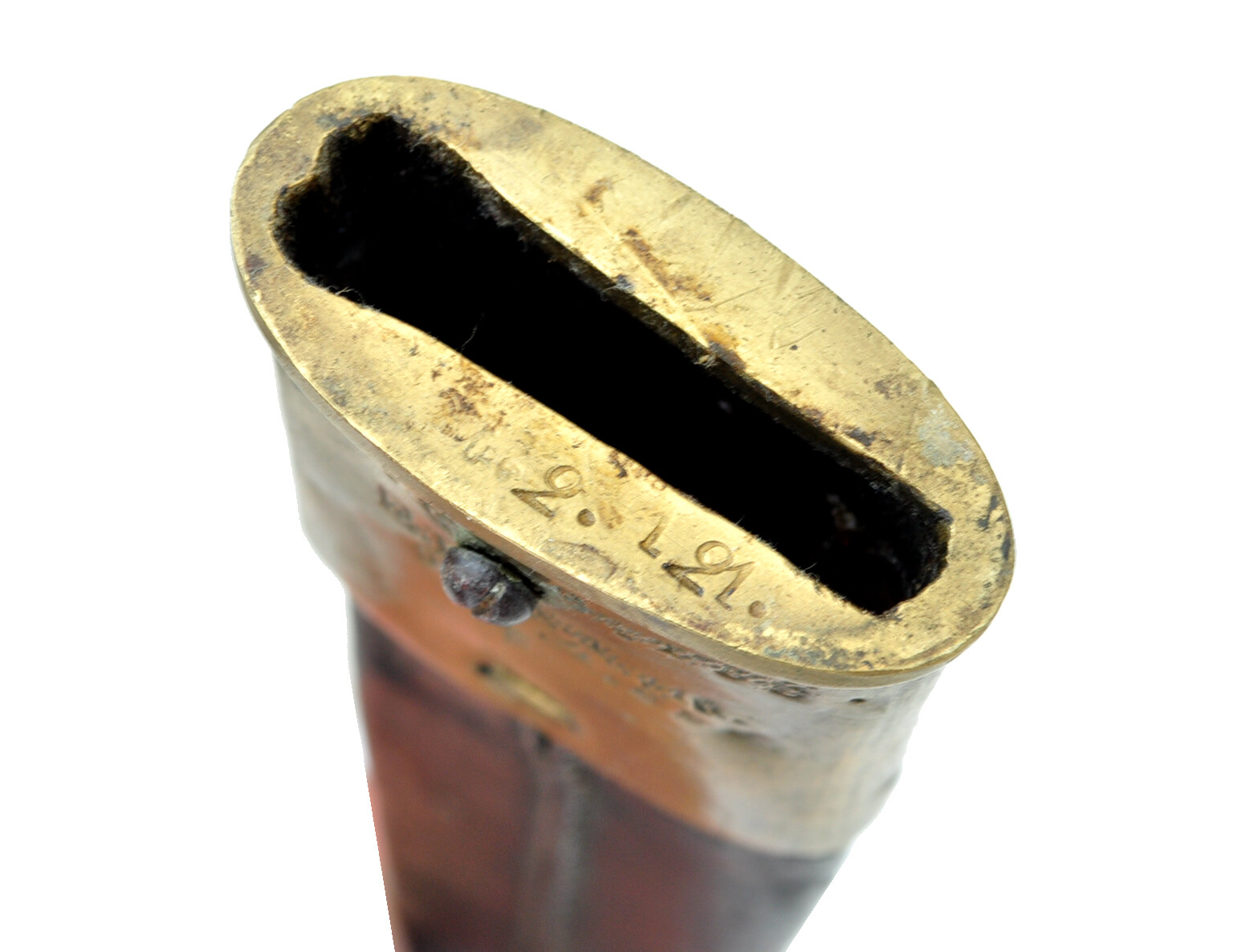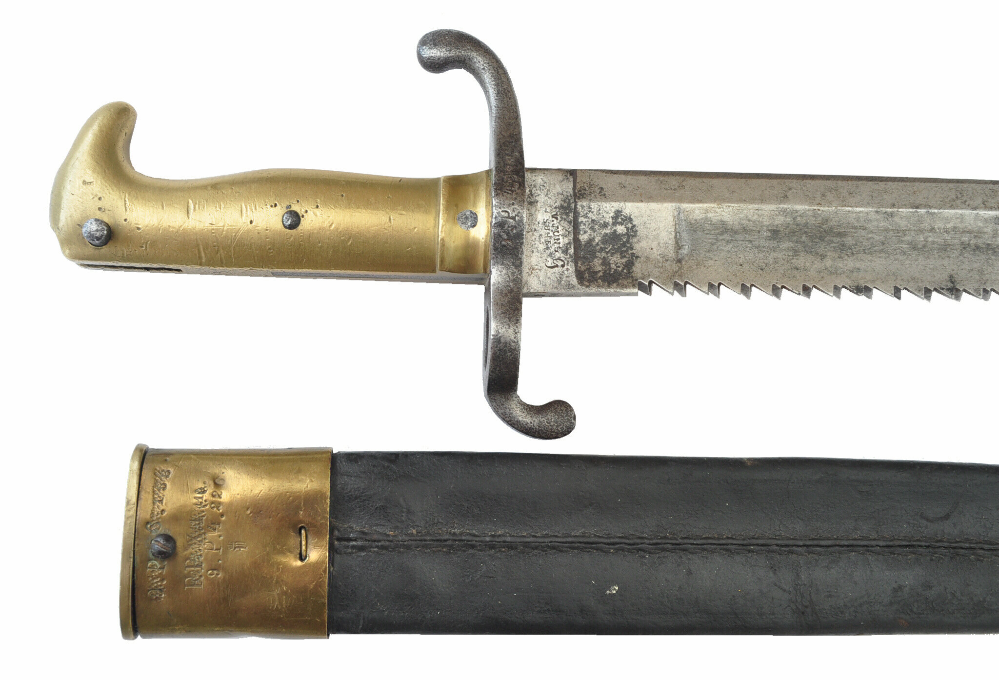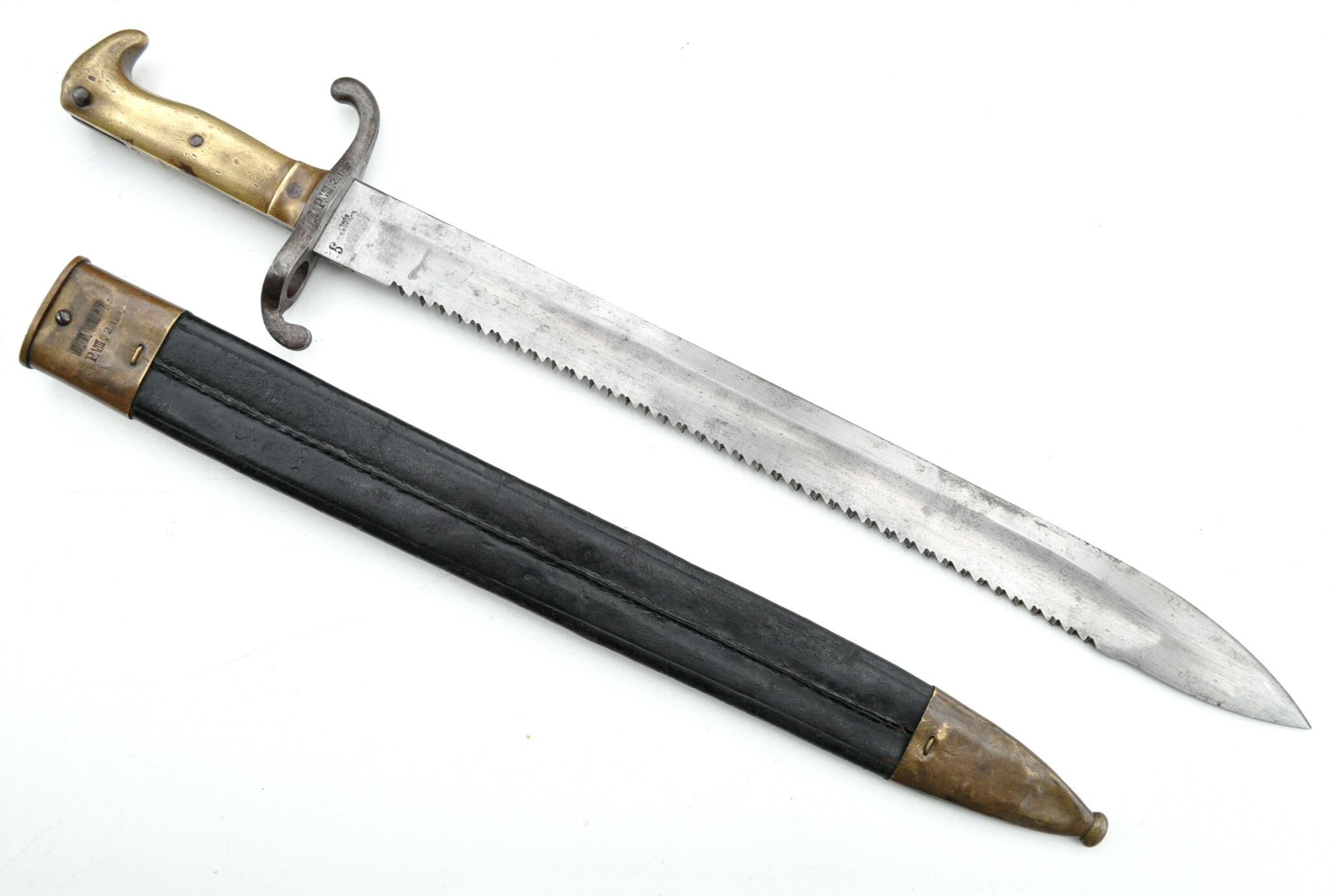 Eigentumstempel FW69 oder 68 und Revisormarke auf dem Scheidenkörper, darunter 433