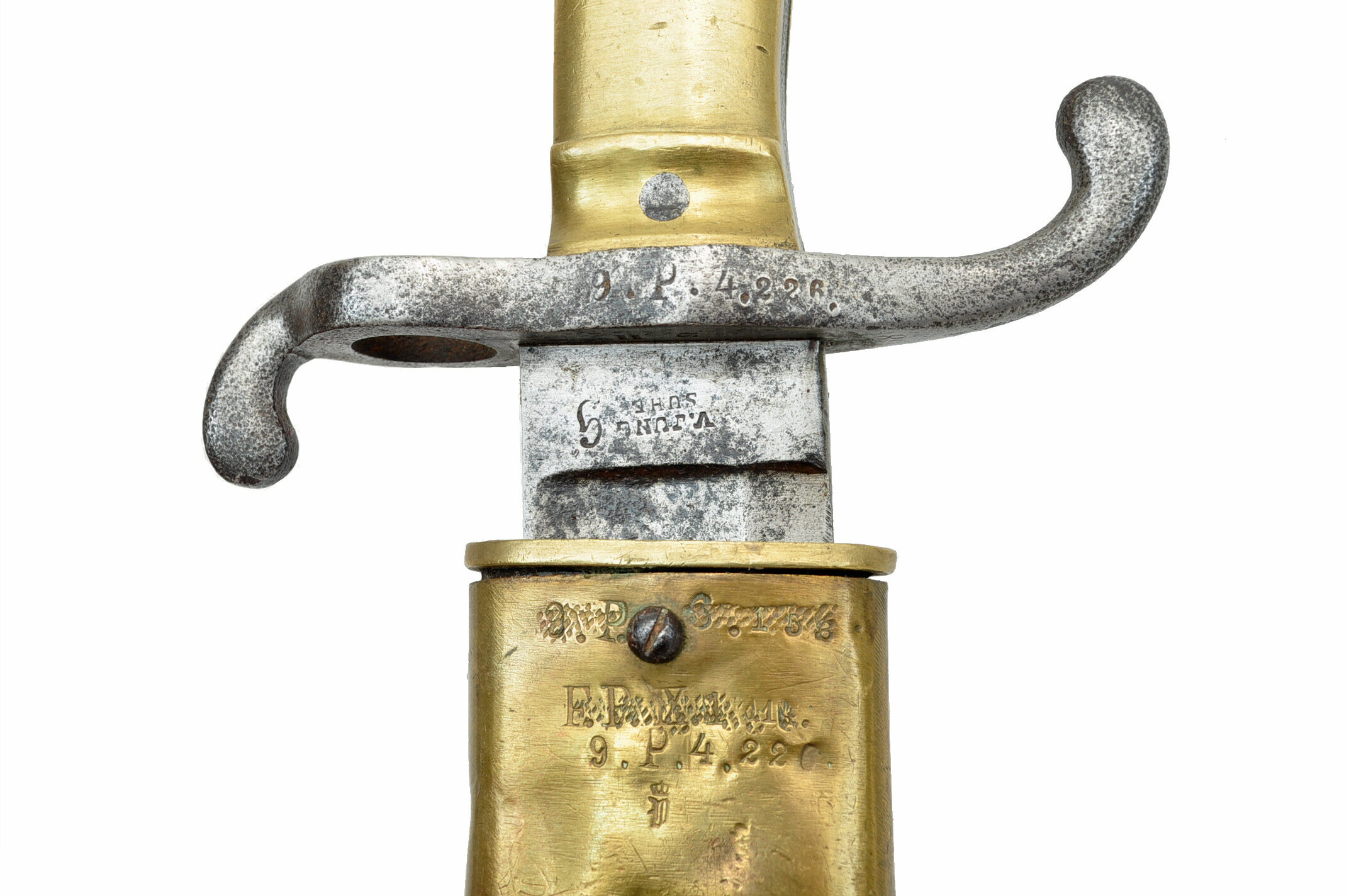 aktiver Truppenstempel 9.P.4.226. auf Parierstange und Mundblech rückseitig