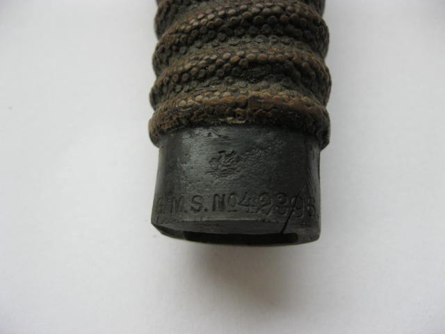 Wer kann etwas mit diesem Herstellerzeichen u.der Registriernummer anfangen?Es handelt sich um eine IOD-Griffhülse ,die anscheinend aus einem frühen Kunststoff gefertigt wurde.Über der Nummer befindet sich ein geflügeltes Wesen.Die Nummer-G.M.S.No.42 396.