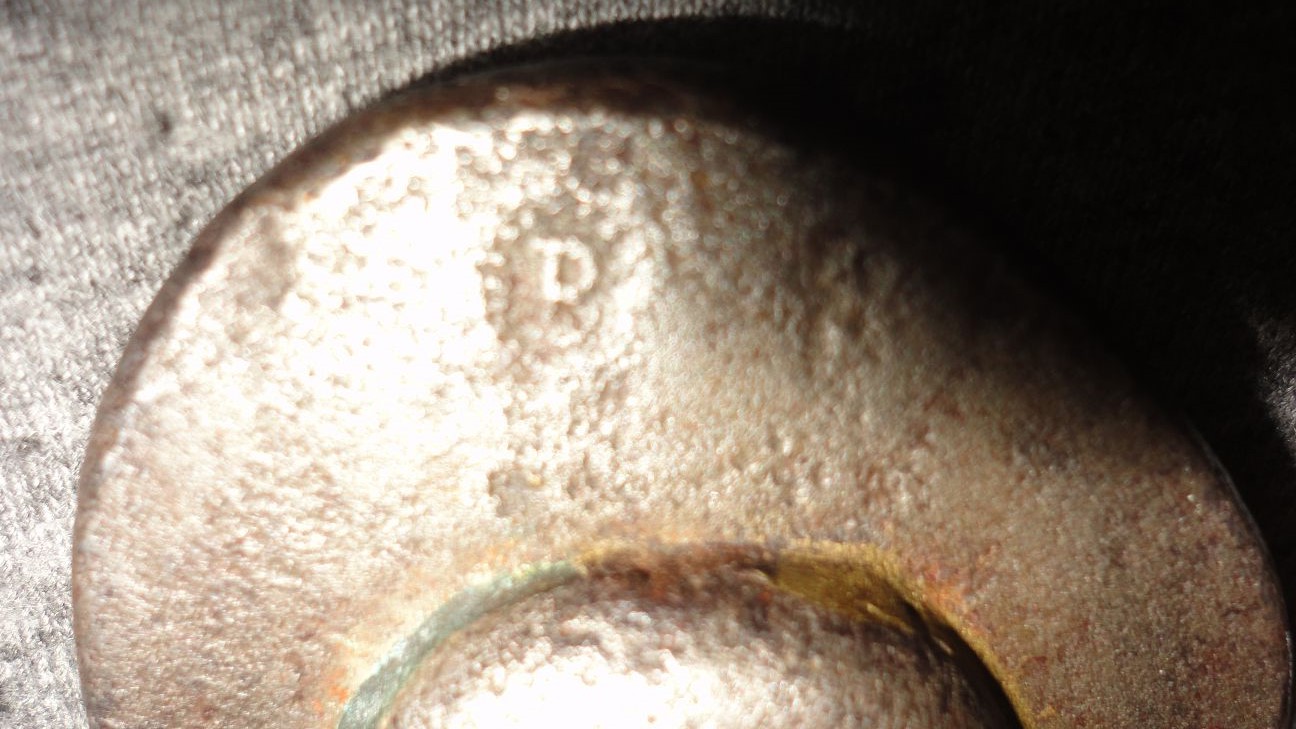 Preuß. Kürassierdegen (Mannschaft, sog. „M. 1732“, also frühe Adlerform mit kleiner Chiffre „FR“, Gefäß mit Kupfer zusammengelötet, Datierung zwischen 1740 und 42). Gefäß unten mit gravierter Nr. und drei Punkten (Montagemarkierung ?) versehen. Klinge bikonvex, ohne erkennbare Marken, mit Reißhaken, Länge 92, 7 cm.
