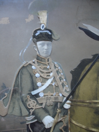 In meinem Besitz befindet sich dieses wunderschöne Reservistenbild. Es ist von Hand beklebt - jede Kordel ausgeschnitten, Mütze aus echtem Pelz! Tolle, filigrane Arbeit! ABER, bei welchem Regiment hat er gedient??