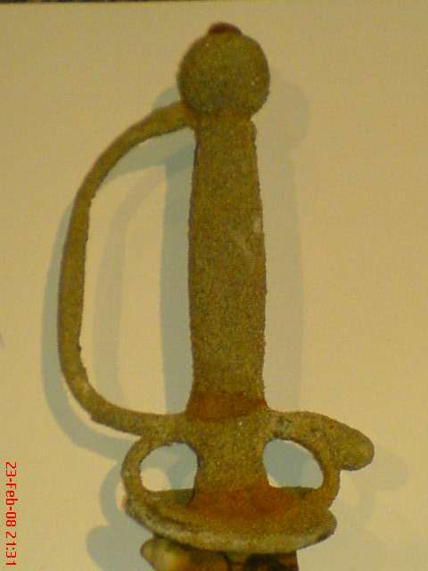 Bei dem ähnlichen Degen in der Museumsvorstellung (Solingen) dürfte es sich um einen sogenannten Trauerdegen handeln. Dieser ist späteren Datums und besitzt ein geschwärztes Eisengefäß.
