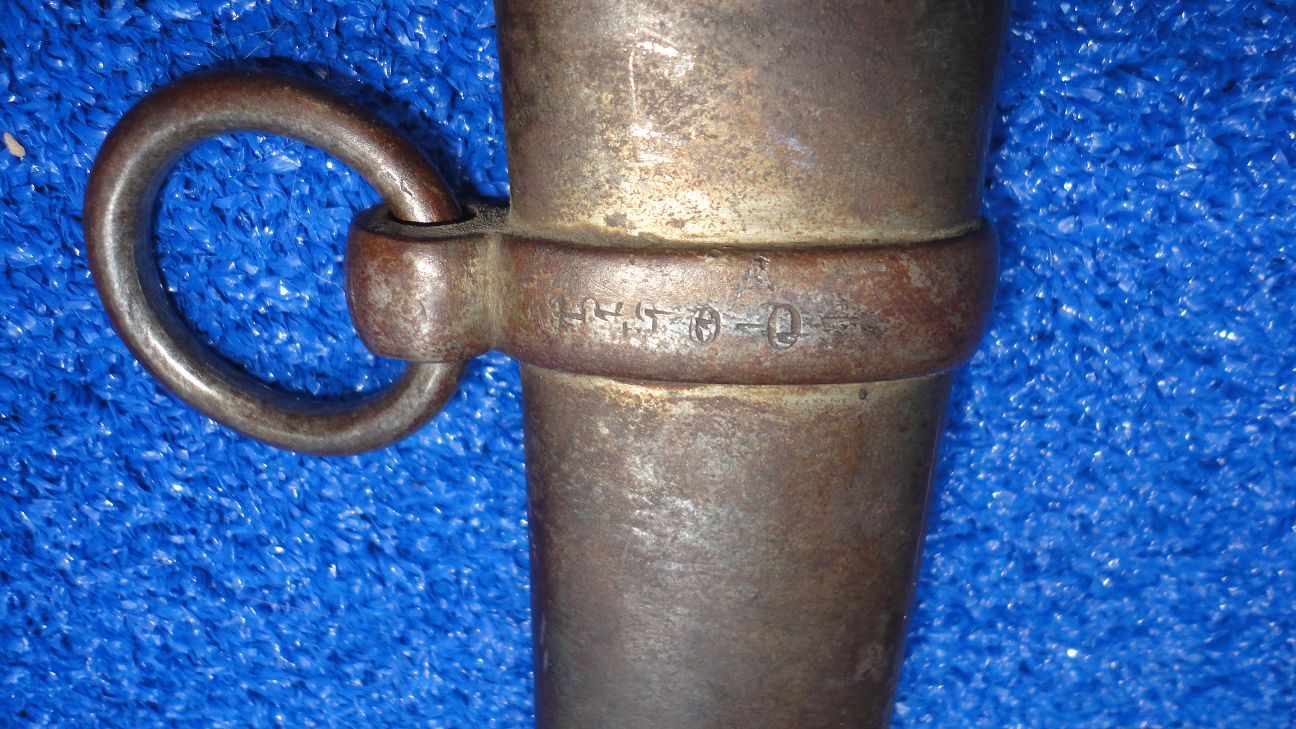 Hier ein Vergleich mit einem preuß.gestempelten Stück.Die preuß.Scheide hat noch die alte Form des Mundes d.h.ohne Einsatz.