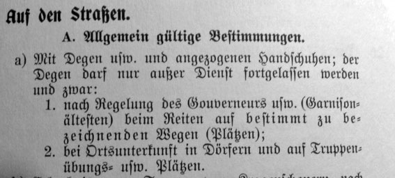 alle Fusstruppen-Offiziere, mit AKO vom 22. März 1889, der Infanterieoffizier Degen n/M reglementiert wurde (Pietsch Band I S 130 ff).