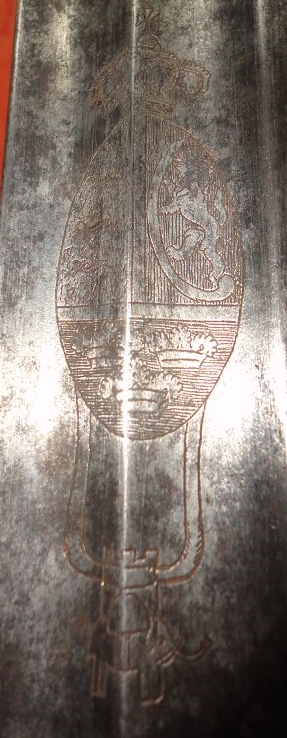 The etchings on the blade is the danish Norwegian coat of arms. This places the Pallasch before Denmark and Norway split in 1814 as result of the politics post Napolionic wars.