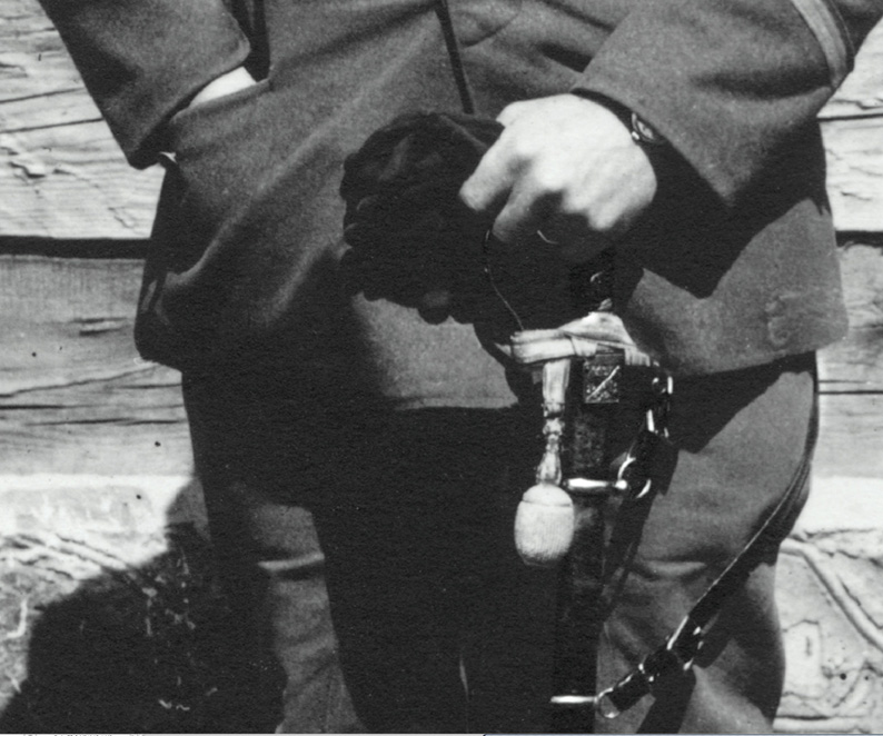 Interessant finde ich die beiden Trageringe an der Scheide (oben groß und unten klein), die noch beide vorhanden sind. Die Feldgraue Uniform für die Feldgendarmerie wurde 1916 eingeführt. Der zweite Tragering musste meine ich ab 1910 gemäß Erlass entfernt werden?