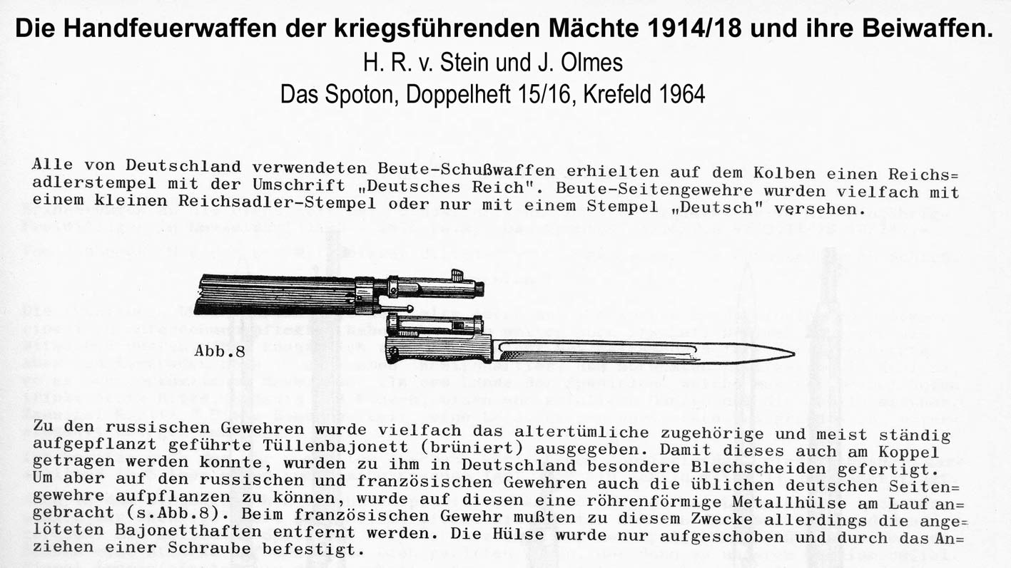 Ein Beitrag zu speziellen Aushilfsseitengewehren für die russischen Gewehren 1891 befindet sich