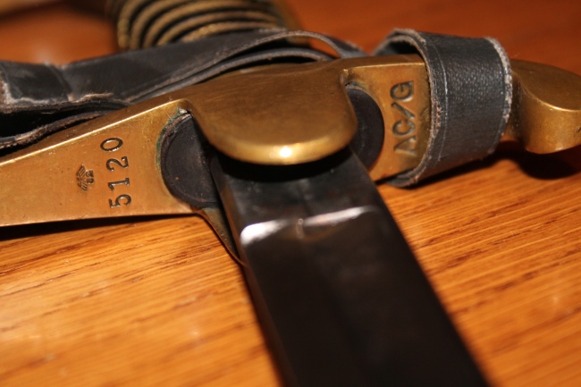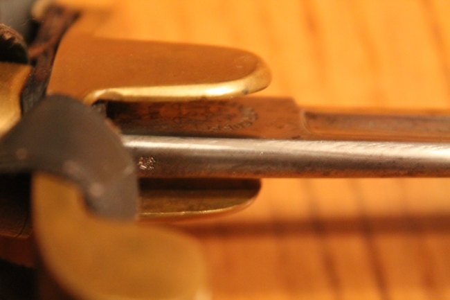 Abnahmestempel (Adler und 82) auf Messinggefäß und Klingenrücken