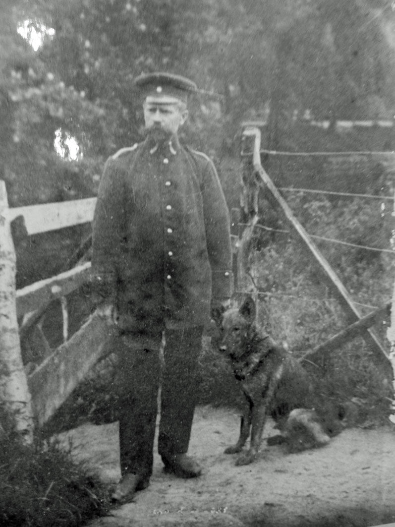 Die zweite Aufnahme mit Säbel dürfte während seiner Militärdienstzeit aufgenommen worden sein. Nach dem Faustriemen zu urteilen im Dienstgrad Unteroffizier bzw. Sergeant. Vermutlich wechselte der Soldat nach seiner Dienstzeit mit dem Zivilversorgungsschein in den Zivildienst.