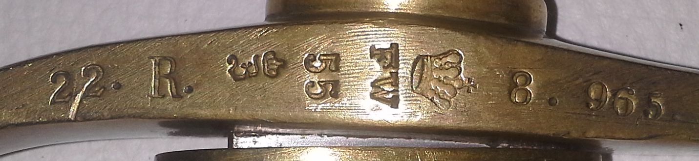 Wobei auch hier grundsätzlich jede Waffenart in sich fortlaufend gestempelt wurde so daß die höchste Waffennummer angibt, wie viele dieser Waffen an die Kompagnie etc. überwiesen wurde. Mindestens 965 Faschinenmesser bei einer Kompagnie, passen hier nicht ins Bild. Das Regiment hatte einen Kriegsetat von rund 3000 Mann bei 3 Bataillonen a 4 Kompagnien. Also ca. 250 Mann je Kompagnie.